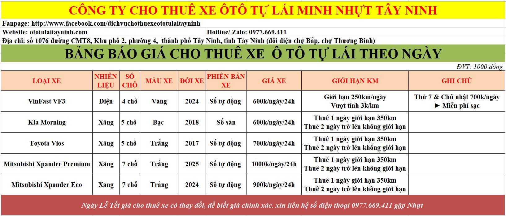 Dịch Vụ Cho Thuê Xe Ô Tô Tự Lái Minh Nhựt Tây Ninh